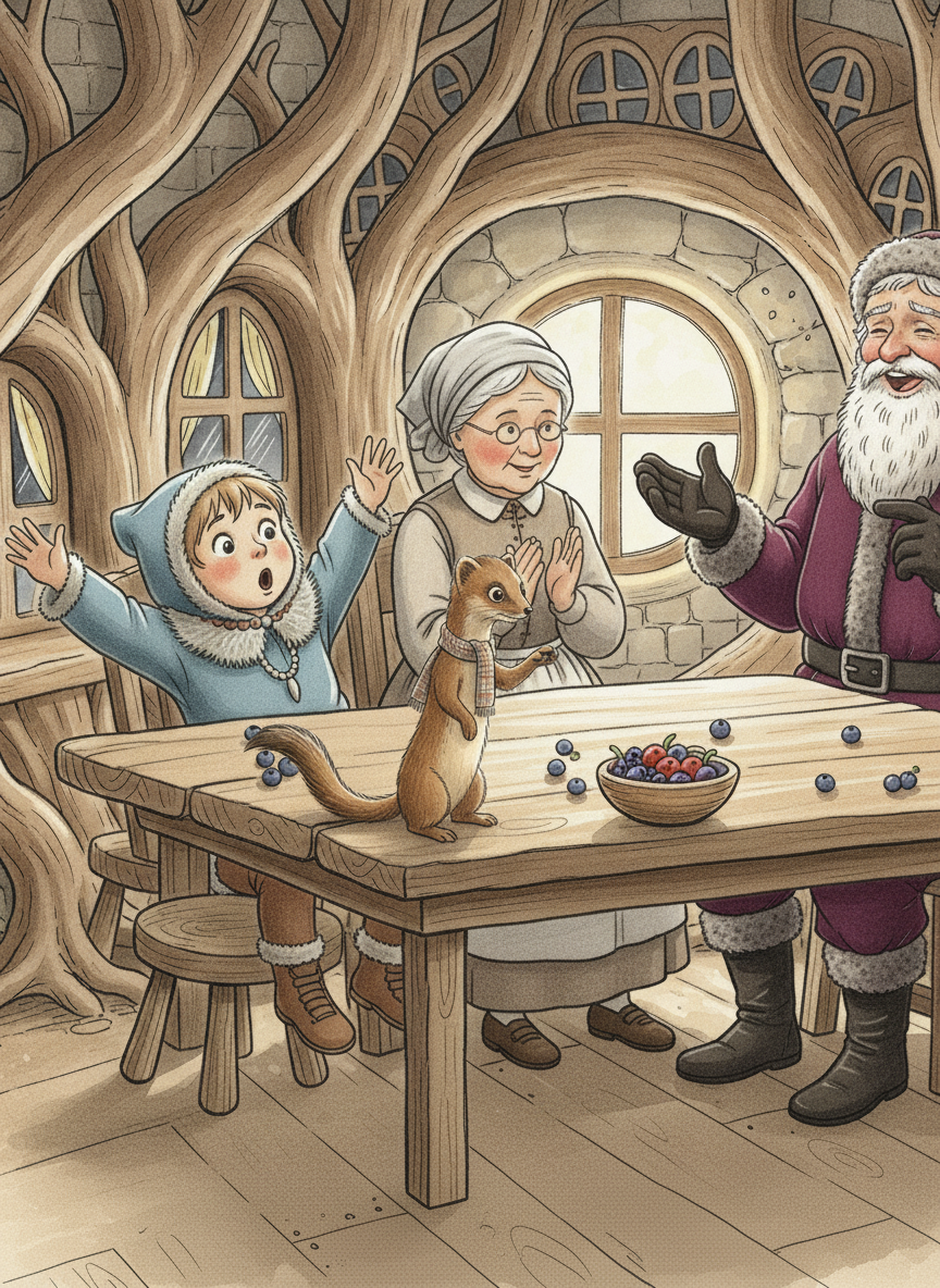 Verwundert blickte Galu um sich. Da standen drei Gestalten, die ihn mitleidig ansahen. Nur einen davon, Mozzel, erkannte er. Vorsichtig stand er auf. Gerade wollte er verkünden, dass er sich gehörig wundere, über den unverhofften Besuch, da schritt eine der Figuren auf ihn zu, nahm ihn in die Arme und weinte vor Glück. „Mein kleiner, kleiner, verträumter Wichtel-Galu. Endlich habe ich dich wieder. Erkennst du mich?“