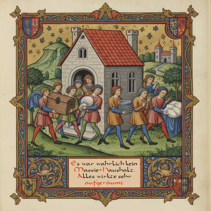 Ich hatte nur vage geahnt, wie viele Dinge ein Mensch in seinem Leben anhäufen kann. Aber diese Ahnungen waren viel zu vorsichtig. Nein! Es handelt sich hier nicht um einen Massie-Haushalt. Es wirkt sehr aufgeräumt und sauber.