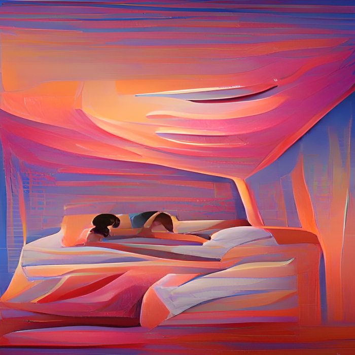 Der Raum ist dunkel, obwohl alle Wände weiß gestrichen sind. Die Fenster waren mit Brettern vernagelt, ich weiß nicht warum. Eines Morgens wachte ich auf, ohne den Morgen zu sehen. Der Raum ist dunkel, aber durch die Ritzen zwischen den Brettern dringt Licht, blau, rot und gelb.