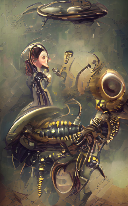 Wombo-Schlagworte: alien + loves + human + being, Style: Steampunk