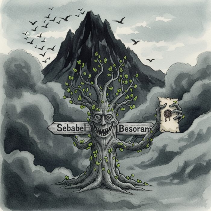 Alles weitere war wie ein Traum für Galu. Er konnte nicht bemerken, wie Mozzel langsam verschwand. Aber er hatte noch seine Worte vernommen, bevor sie in der Ferne verhallten. Nun sah er, wie sich dieses Wesen, dass er noch vorhin für einen ganz normalen Wegweiser gehalten hatte, erneut veränderte. Es wuchs und wuchs. Es bekam ein Gesicht, eine riesige Nase. Richtige Arme und Beine. Aber nicht ganz normale Glau-Beine, sondern riesige Beine mit riesigen Füßen und riesigen Zehen. Das alles geschah aber in völliger Stille.