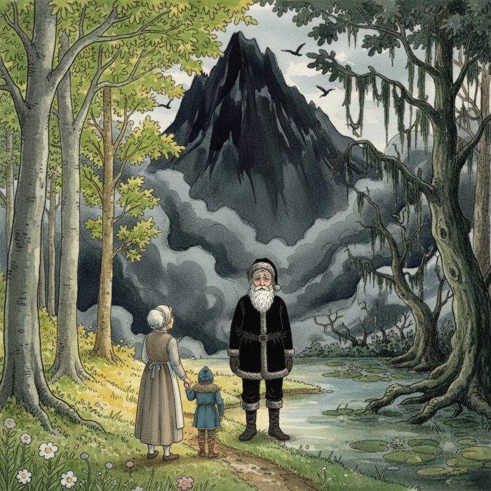 Natürlich kannte sie den Berg. Da Gila die fremde Gestalt plötzlich gar nicht mehr so bedrohlich vorkam, fasste sie sich ein Herz, holte Galu, der sich inzwischen selbst mit dem frischen Beerenbrei gestärkt hatte, und folgte der schwarzen Gestalt bis nach Greb.