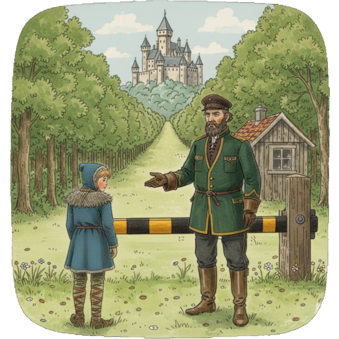 „Meine Papiere“, dachte Galu. „Ach ja richtig, der Brief des Wegweisers“. Galu gab den Brief ab und sagte „Nun, mehr Papier habe ich nicht.“ Galu wurde unsicher. Der Mensch stutzte, sah auf das merkwürdig zusammengefaltete Blatt und wollte es entfalten.